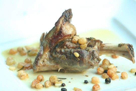 Agnello alla Lega (Lamb with golden raisins, saffron, and juniper berries)