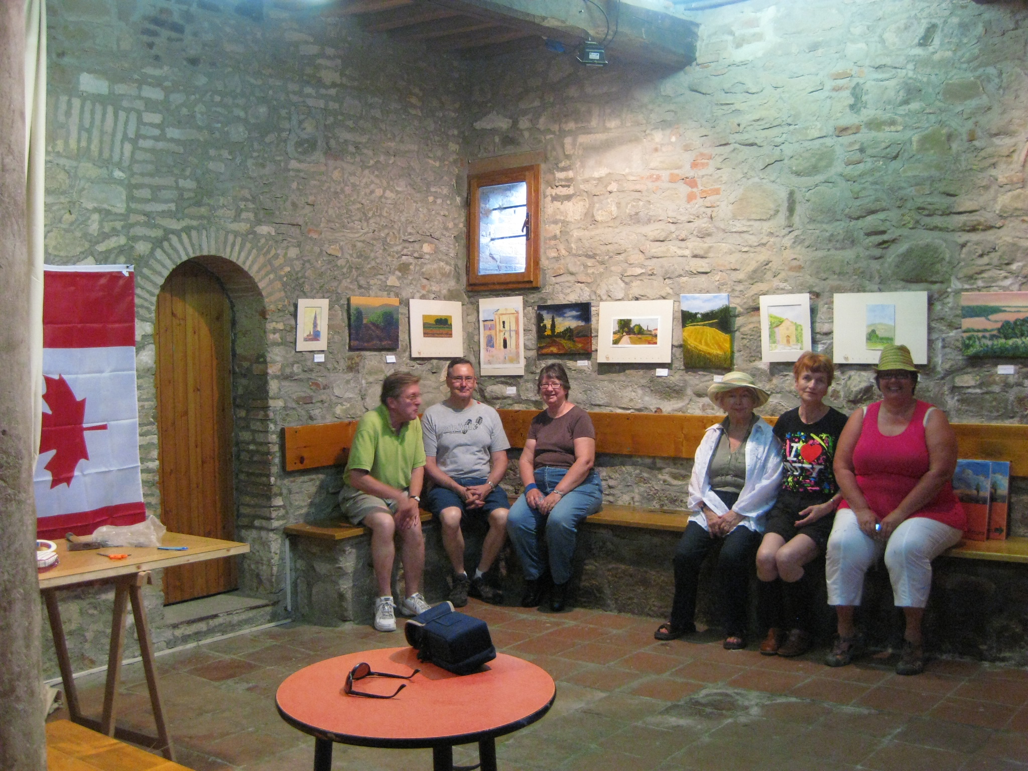 Since 2006 we have been part of the marvelous arts and gastronomy festival il colle degli ulivi held every June in the charming medieval village of Rigomagno (Siena). On June 20 we mounted our Studio Italia’s show in a pop-up gallery that our dear friends Anna and Gianluca kindly arranged for us. After a full day that started with a painting session at our lodge followed by a lecture on Duchamp and an art expedition to Cortona, around 6:00 p.m. we all head to Rigomagno with around 30 paintings! After a couple of hours everything was set and we went back to our lodge to celebrate! The exhibit will be open to the public until the end of the festival (June 26). We are very grateful for this opportunity! Our group not only will have the experience of an Italian show, but most important they will meet many artists of the region as well as the people of Rigomagno, one of the most welcoming and generous that we have ever met! We’ll keep you posted about the Benfinita, a beautiful outdoor dinner party to celebrate the end of the festival and to which we are all invited!