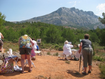 I left my students at the bottom of Mont Sainte Victoire so they may start painting peacefully, following their heart and their eyes. I left them with their easels and their faith. After an hour, descending from the mountain, I saw that they were not able to overcome the overwhelming geological and cultural world inheritance.