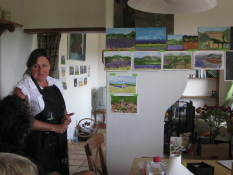 In the afternoon we have our crit and the chance to see everyone’s works. Yves is very happy with everyone’s progress since our first experience in Tuscany. We then proceed to hang three paintings each at a “pop-up gallery” kindly arranged by the farm owners for our group show. The community is invited to our vernissage and we meet lots of terrific people. And WOW, Enzo sells one of his great paintings. Bravo Enzo!!
