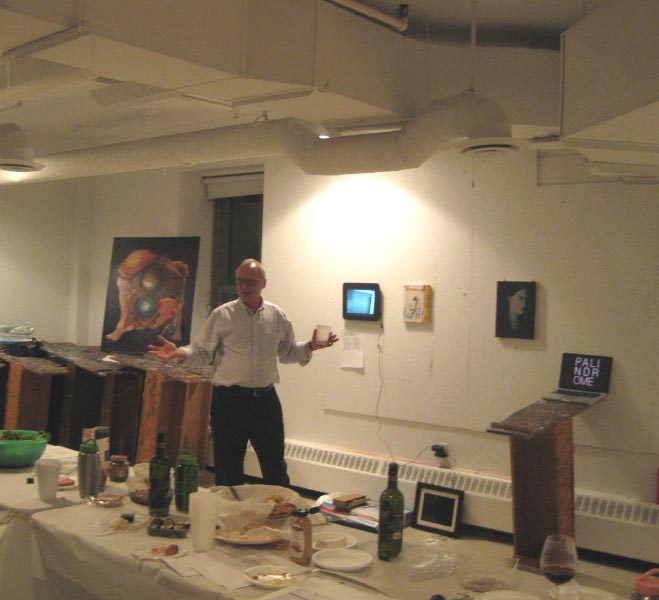 Here are 2 photographs of us getting ready for the exhibit in a few days. The Nouvelle Scene Bistro will inaugurate the exhibition Palindrome: Ecce on March 17, 2012.