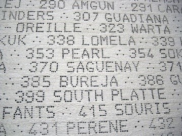 First, our brain takes care of the denotation; we know each word refers to a “river”. Second, the connotation or connected sentiment arises according to the observer’s cultural background. Therefore, the experience is different to each spectator. It is easy for Egyptian or Brazilian spectators to find their mythical and winding rivers Nile and Amazon rivers marked at the very top of the work, while for Canadians, it takes a bit longer to find their majestic and cold Saguenay located somewhere in the middle of this huge work of art. Mythical, winding, majestic and cold are all connotative meanings or in other words, subjective associations that arise from the observer’s